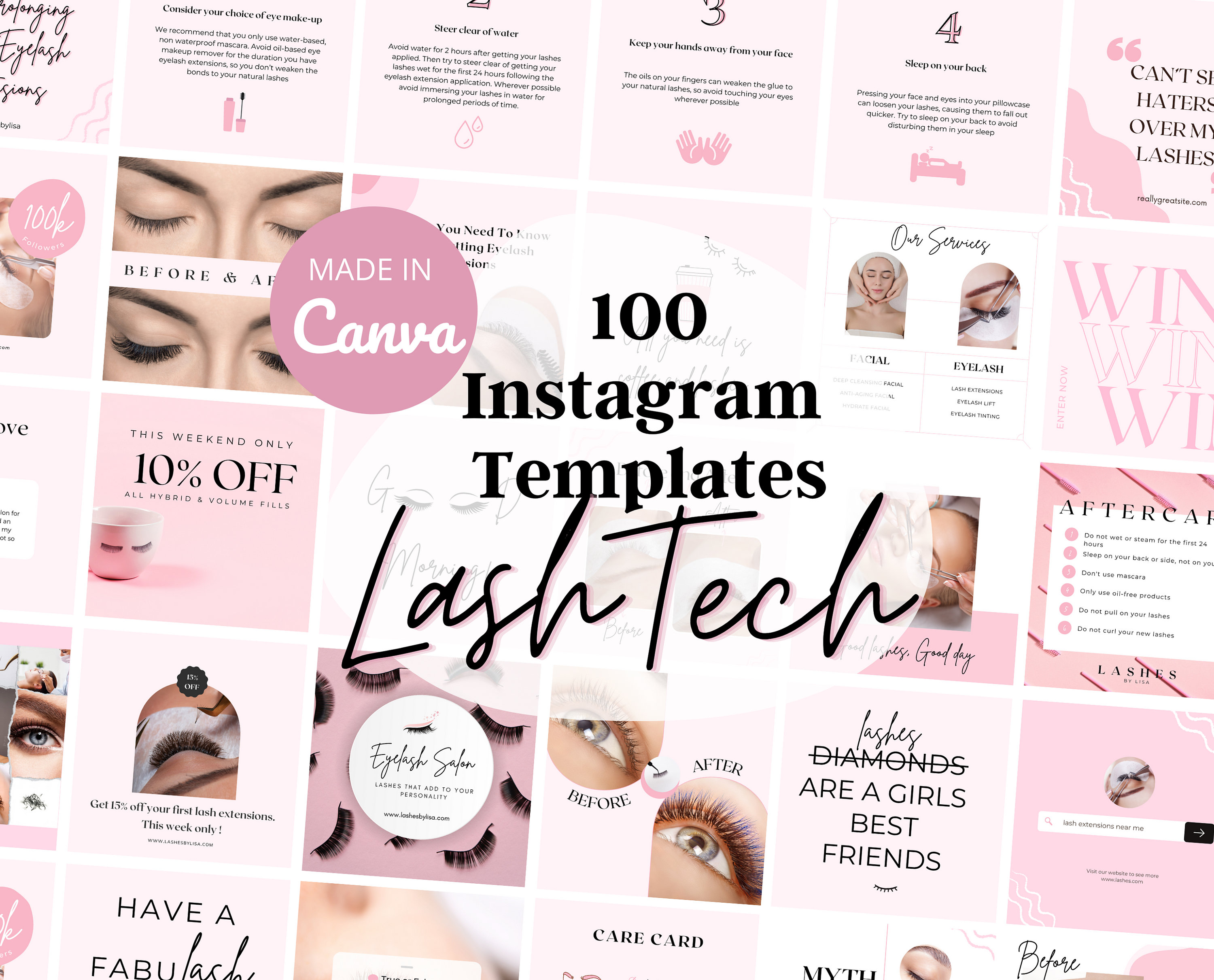 30 Lash Tech Instagram Post Canva Templates Ladystrategist Shop